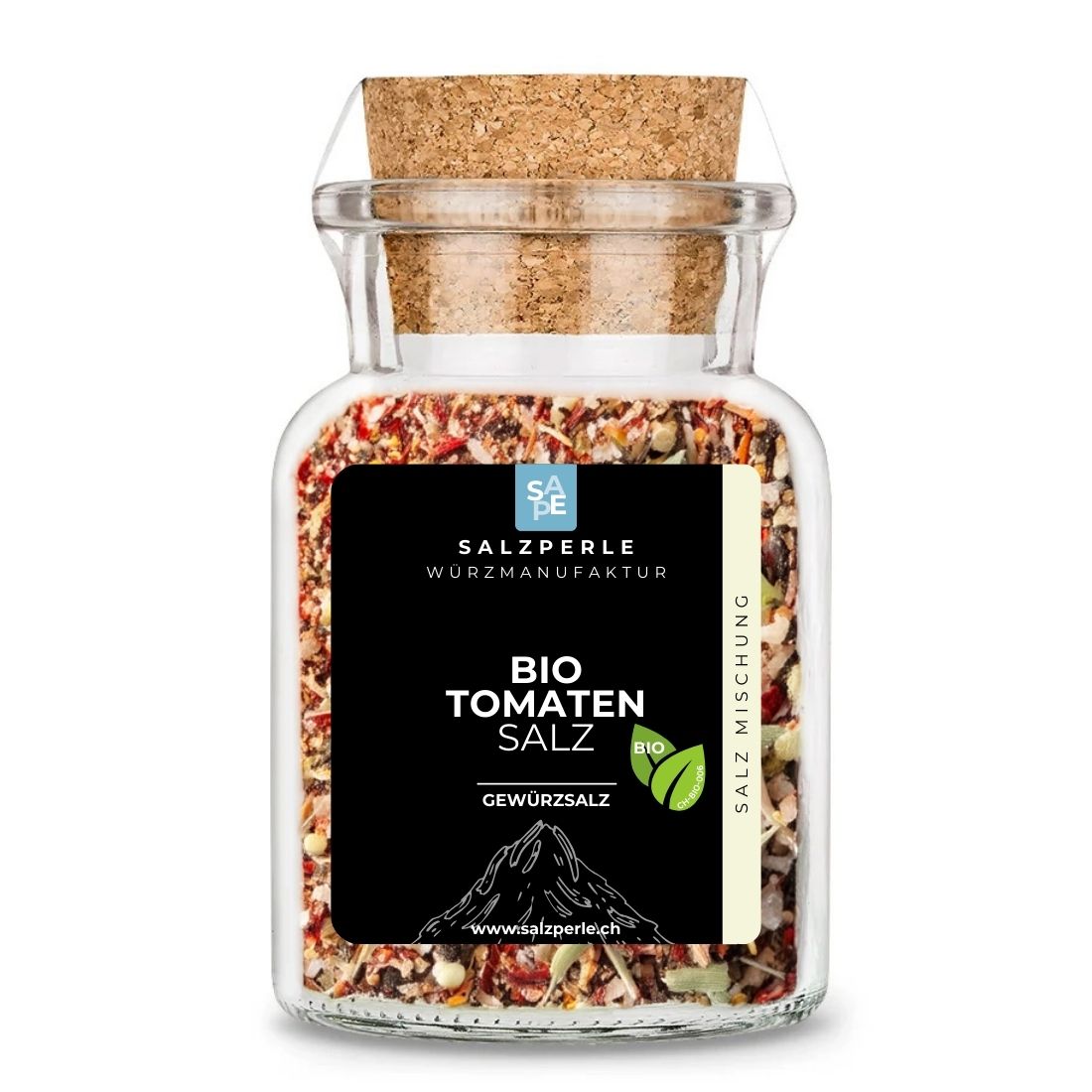 Tomatensalz ist eine Gewürzmischung aus 40% Meersalz, 23% Tomatenflocken sowie Paprikaflocken, Zwiebelraspeln, schwarzem Pfeffer, Thymian, Schnittlauch und Oregano. Es verleiht deinen Gerichten eine fruchtige, mediterrane Note und bringt die Aromen sonnengereifter Tomaten in deine Küche.